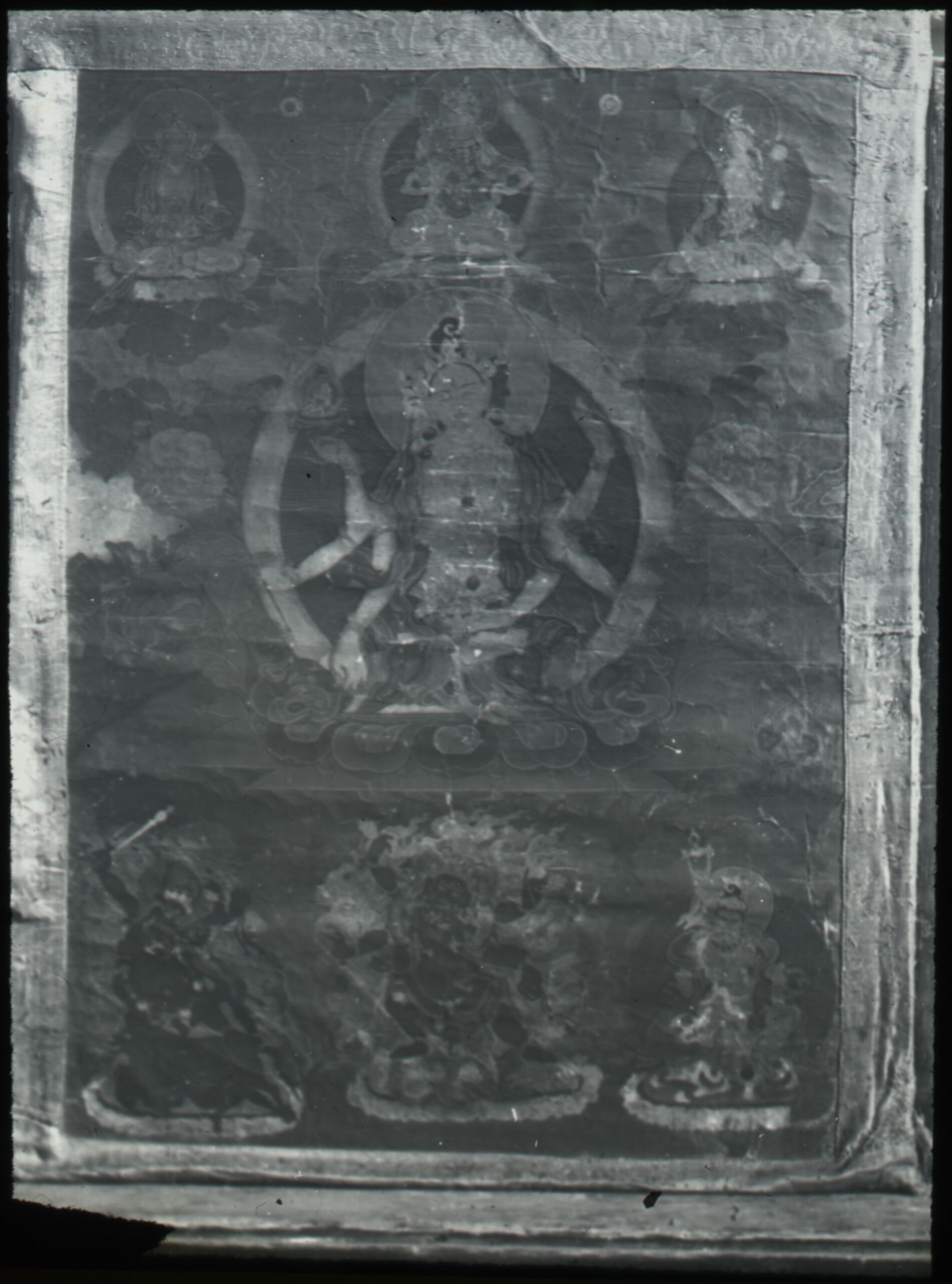 - 作品に記載されている文章: Usnisa vijaya, Tempelbanner. Tibet, 16. Jahh. Sammlg. Kramrisch. Usnisa-Vijaya Banner-Malerei. Tibet, 16. Jahrh. Smlg. Kramrisch