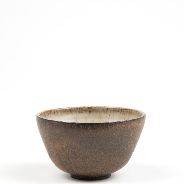 Enghalsvase, kegelförmig, angegoßener braun-weiß gesprenkelter Glasurdekor