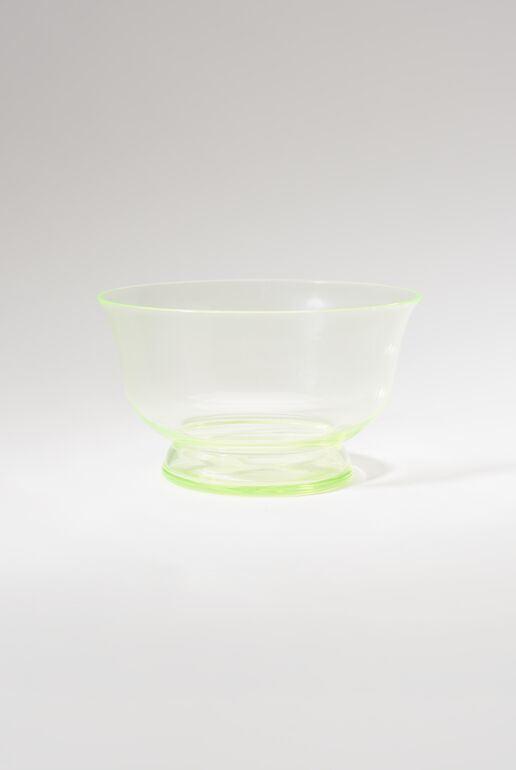 gelbgrün gefärbt, große Tulpenform mit Wülsten 14-passig in die Form geblasen