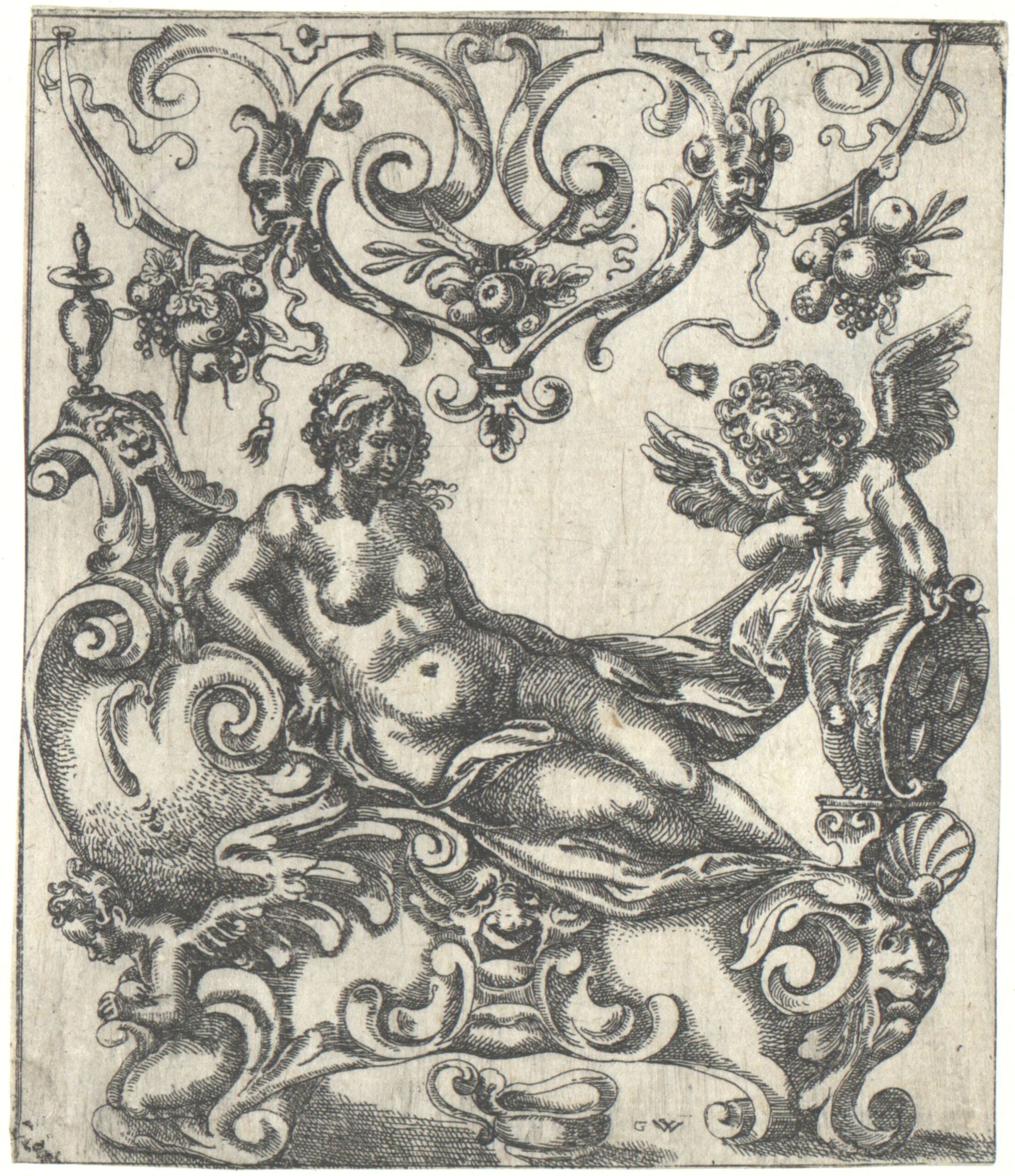 ornamental engraving, Venus und Amor, evtl. aus der Folge „Neuw Grotesken Buch“, Georg Wechter, MAK Inv.nr. KI 2272