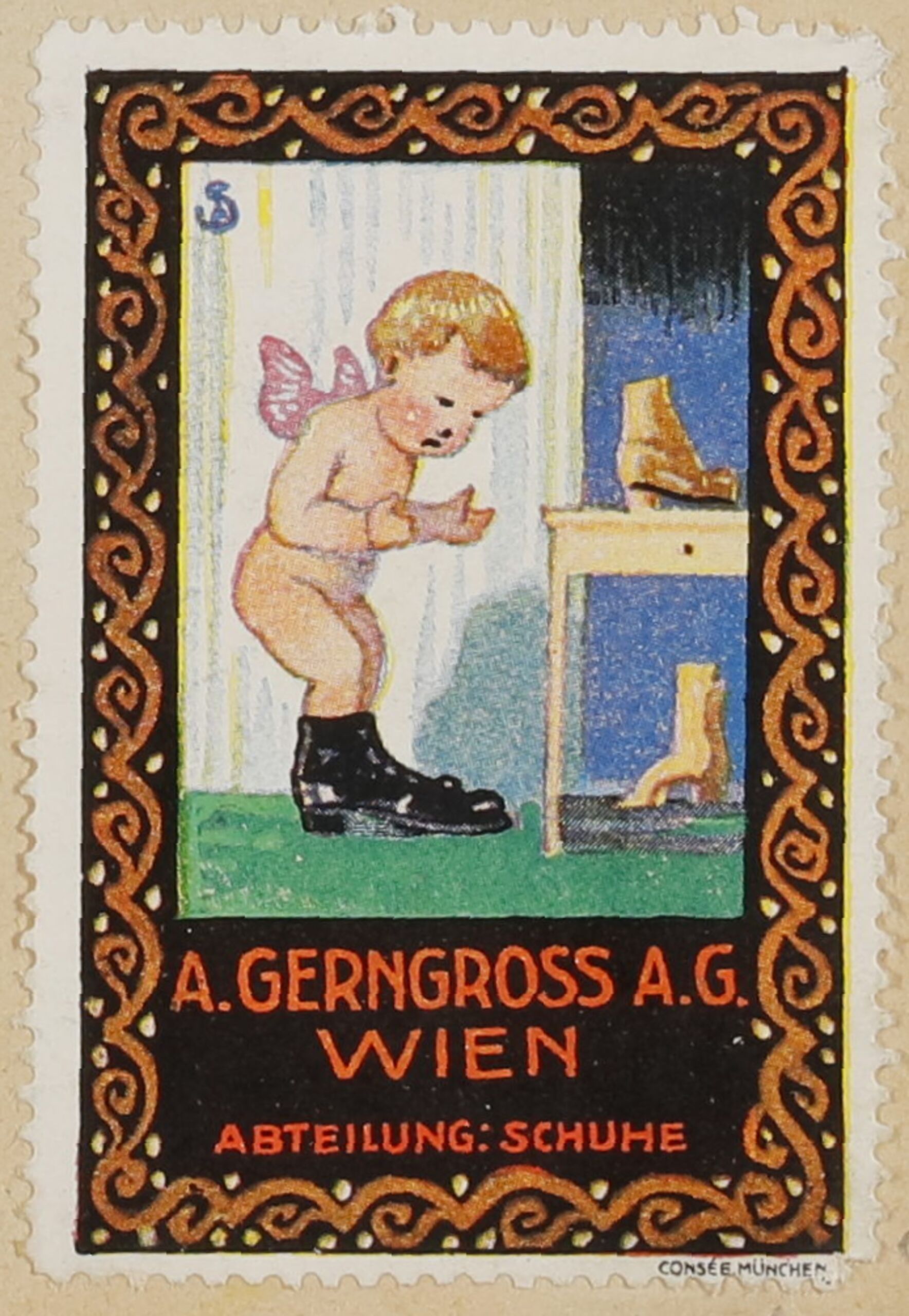 poster stamp, Werbemarke für A. Gerngross A.G. Abteilung: Schuhe, Siegmund von Suchodolski, MAK Inv.nr. KI 23246-4-86