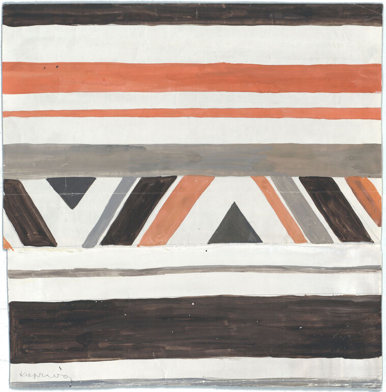 - 作品に記載されている文章: Dessin: „Ernestine“/Kopriva SN.74920/7077Stempel/inventarisiert: 9.Aug.1927S.R. = ganze Stoffbreite/L.R. = 43 cm2 Stück 150x65 cm. F.II.12 cm