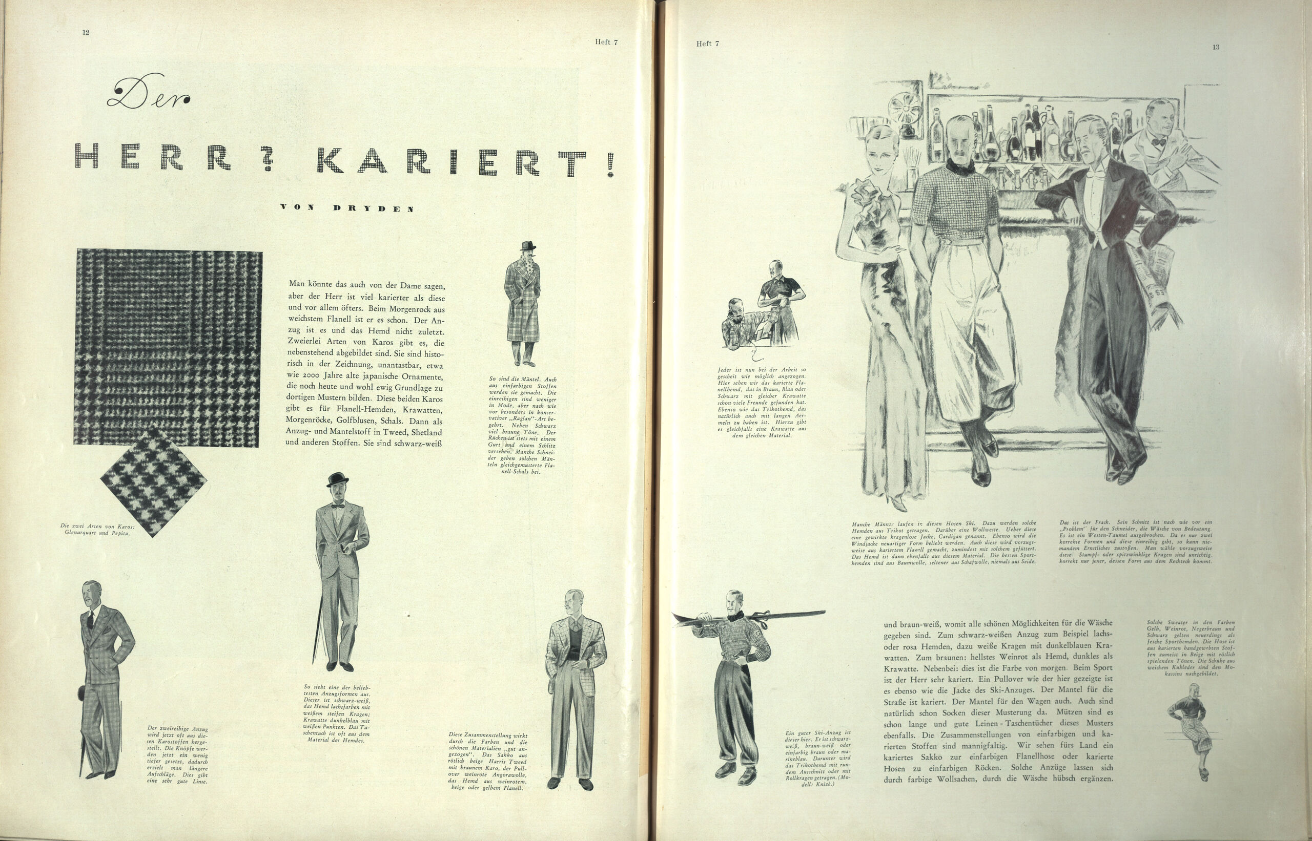 magazine illustration, Zeichnung von Ernst Deutsch Dryden für Zeitschrift "Die Dame" aus: Jg 1932, Heft 7, S. 12 und 13, Ullstein Verlag (Berlin), MAK Inv.nr. BI 18146-1932-7-12-13