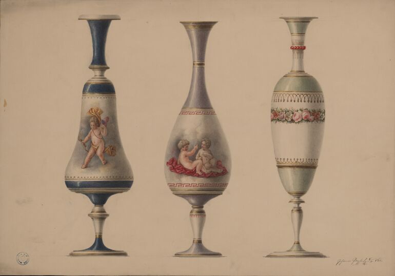 - Stempel: Bindenschild K. K. Porz. Manuf. [Wiener Porzellanmanufaktur]
