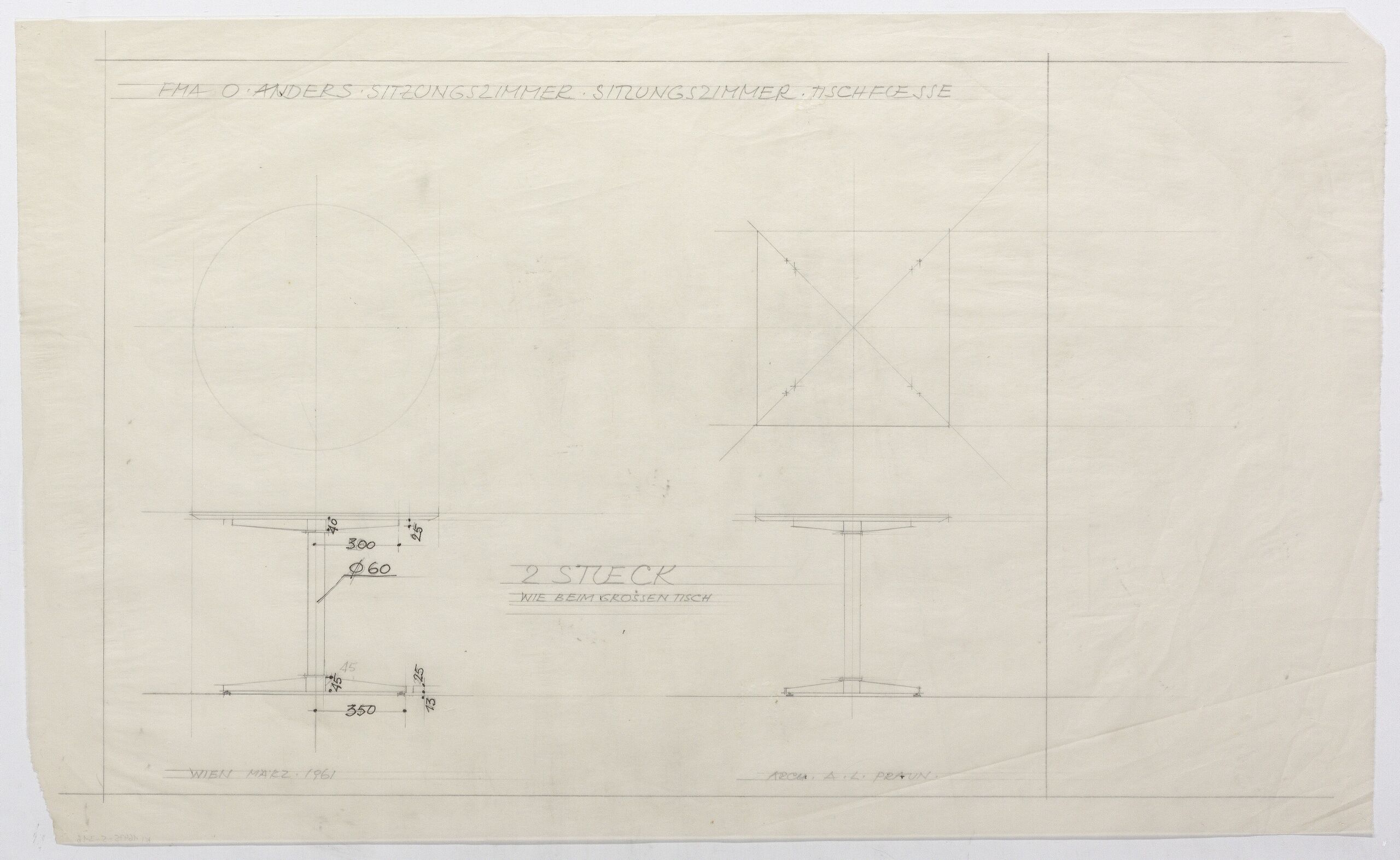 - 作品に記載されている文章 (oben) : FMA O ANDERS SITZUNGSZIMMER SITZUNGSZIMMER TISCHFUESSE